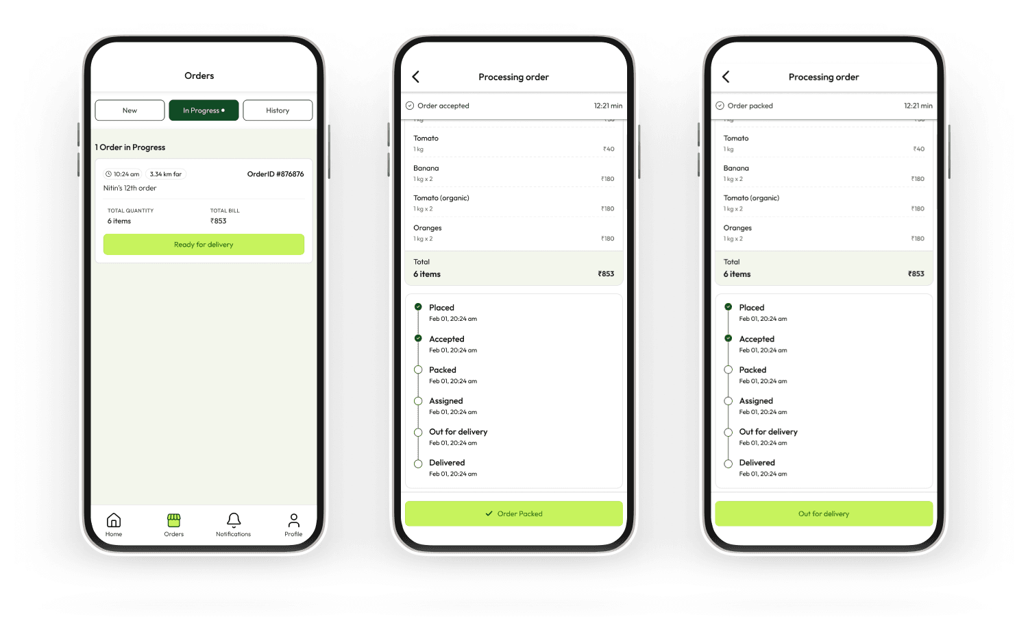 Vendor confirms, marks ready for pickup