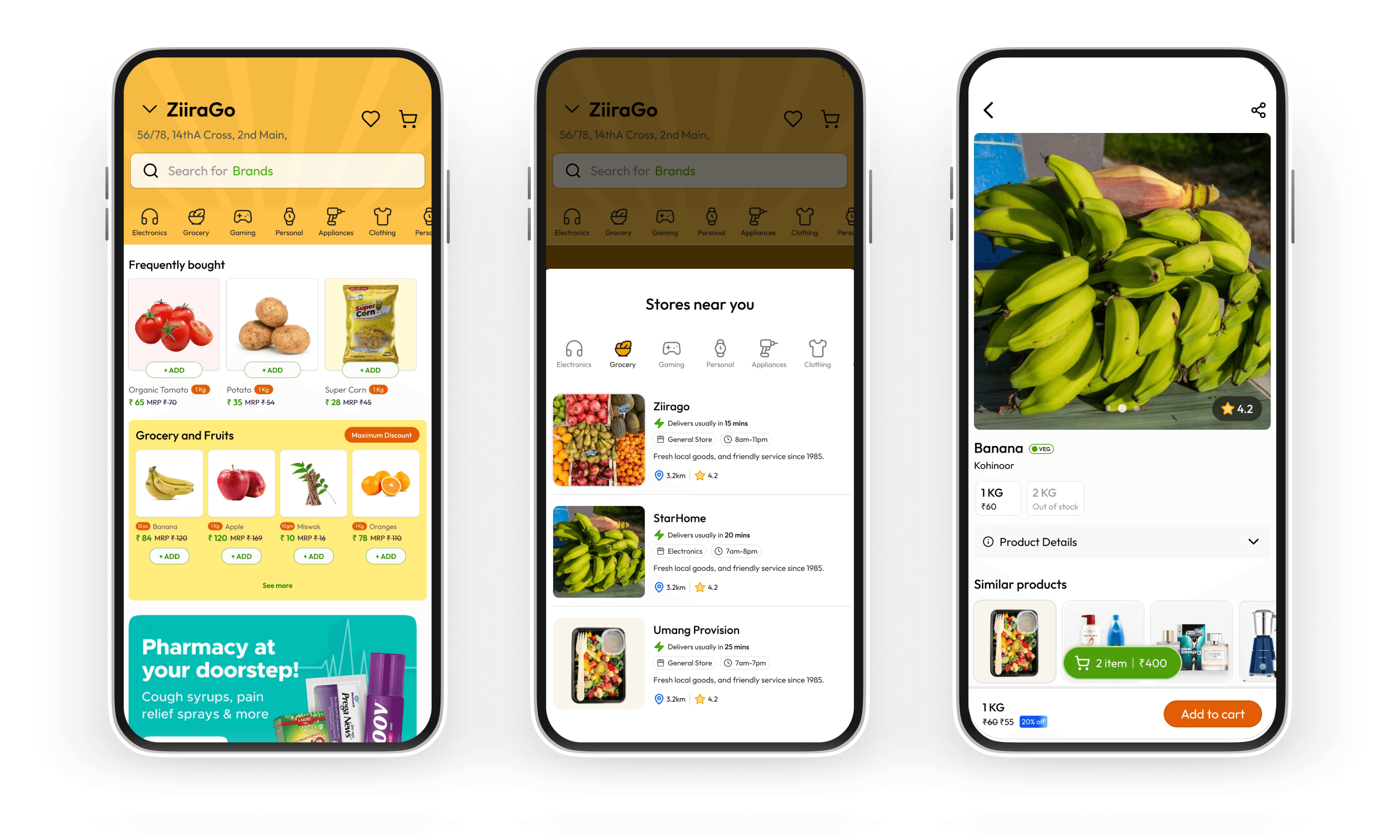 When users wanted items from different stores in one session, the app resolved it gracefully — cart management, delivery grouping, and transparent pricing all handled at checkout.