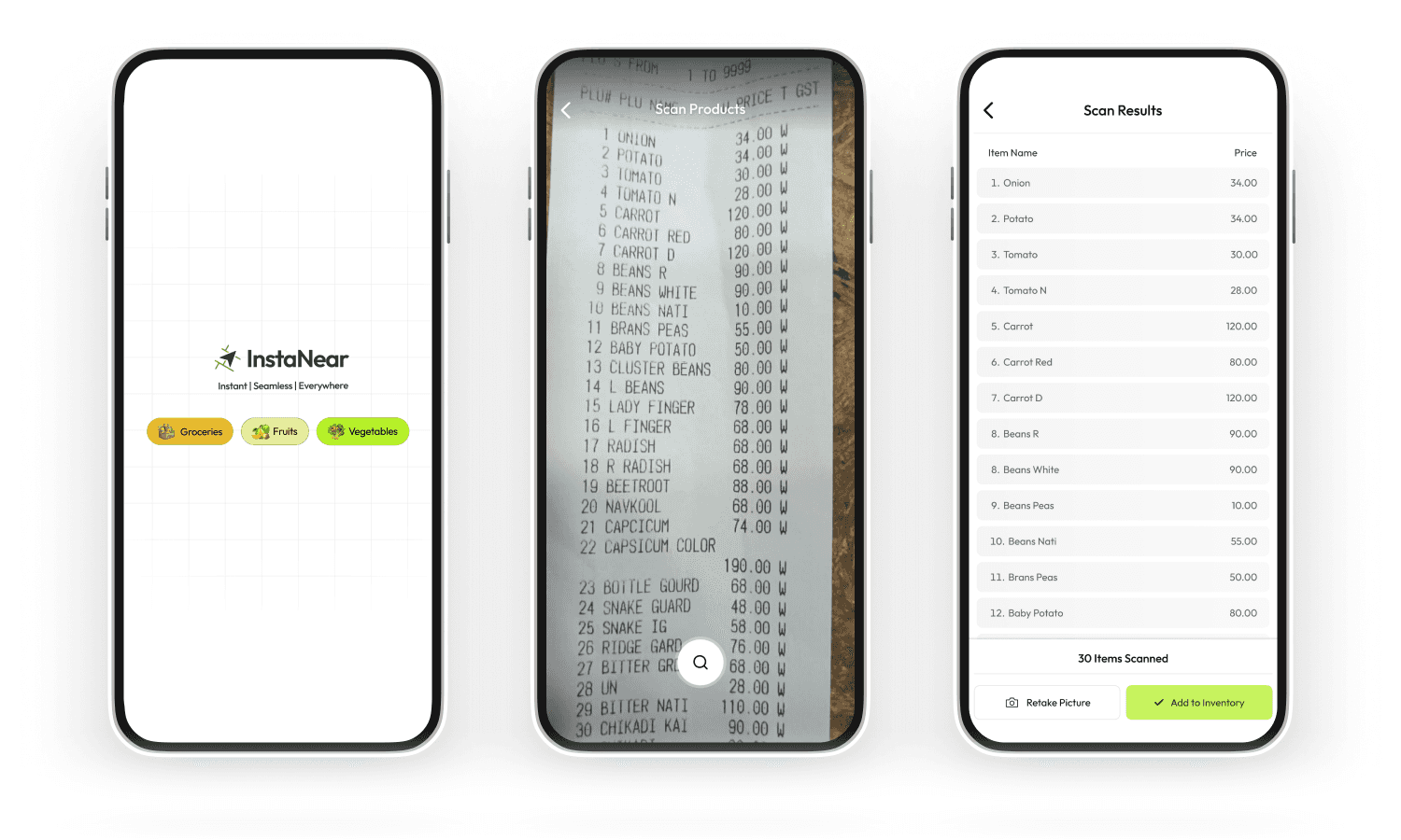 The vendor app was the harder design problem. The consumer experience had precedent — Blinkit, Zepto had shown the pattern. The vendor operations experience was largely uncharted, and the user was fundamentally different: a shopkeeper managing 500–2,000+ SKUs, often using pen and paper, with little patience for new software.